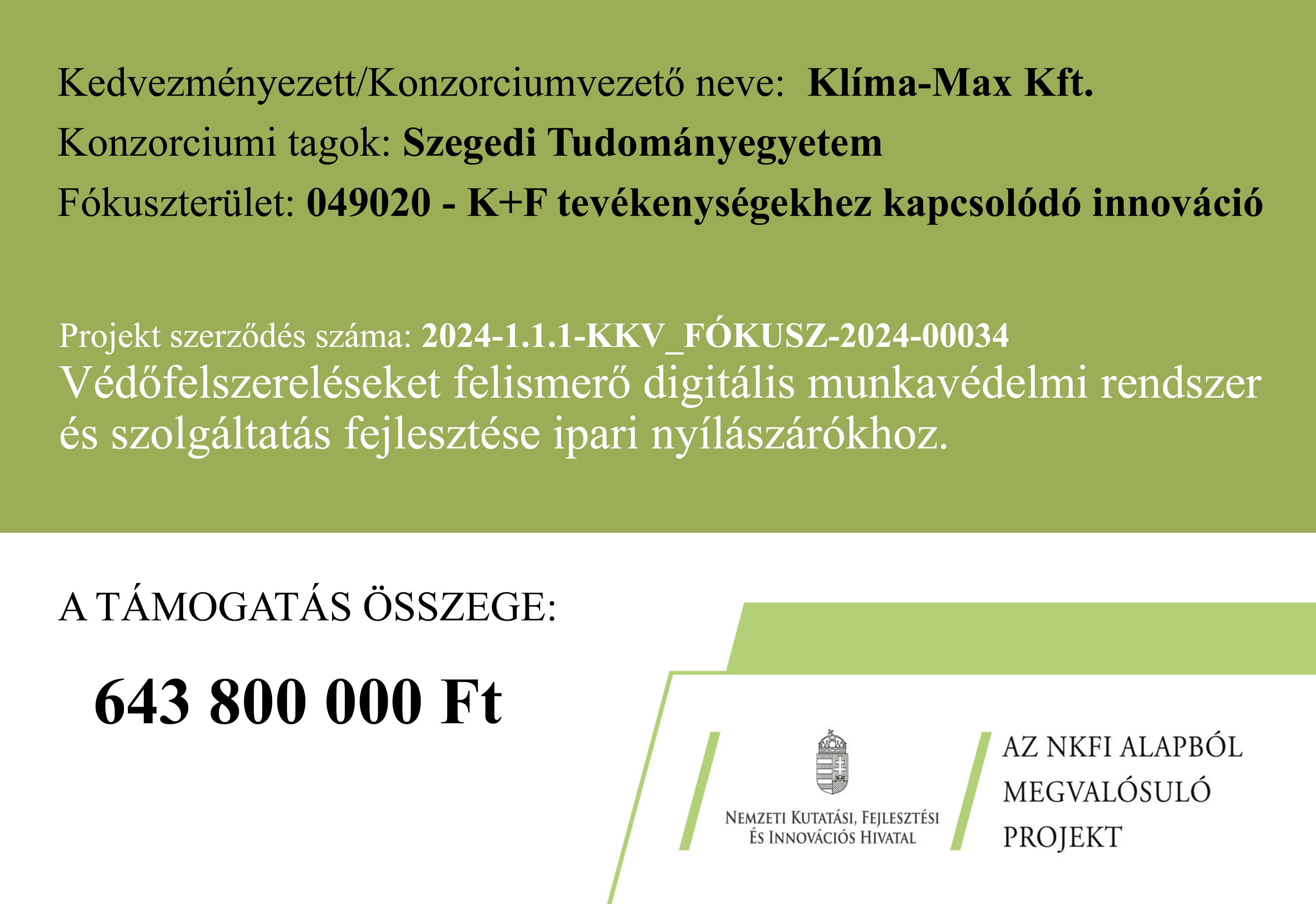 A projekt címe: Védőfelszereléseket felismerő digitális munkavédelmi rendszer és szolgáltatás fejlesztése ipari nyílászárókhoz